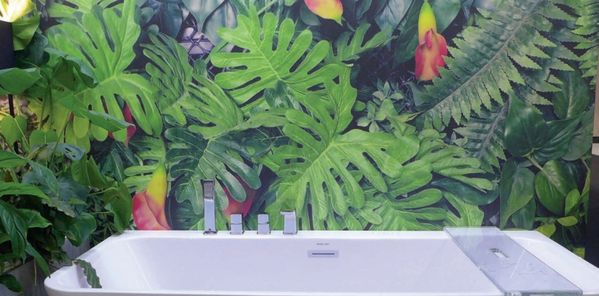 O atrakcyjności tego rodzaju okładzin w łazienkach decyduje przede wszystkim ich niezwykle bogate wzornictwo. Do utrwalonych i ponadczasowych motywów można zaliczyć tapety z pionowymi pasami, kratką czy wariacjami na temat królewskich lilii. W przeszłości w łazienkach stosowano chętnie wzory przypominające tradycyjne kafelki naśladujące nie tylko typowe dla płytek formaty, ale także spoiny. Obecnie takie wzornictwo jest marginalizowane – owszem, do bardzo modnych należą tapety odtwarzające np. stare bogato strukturyzowane cegły z wyraźnie zaznaczonym rysunkiem spoin, ale wyróżnia je trójwymiarowość, niuanse kolorystyczne i strukturalne, a także niezwykła staranność wykonania. To tapety określane jako 3D, które inspirują się motywami geometrycznymi – często zapożyczonymi z estetyki op-artowskiej. Dla większości projektantów i użytkowników liczą się atuty tapety, czyli możliwość ułożenia na ścianie efektownego wzoru bez tworzenia charakterystycznych dla płytek fug. Projektanci są na bieżąco z aktualnymi trendami wnętrzarskimi. Stosowane w łazienkach wzory mogą przypominać szlachetne tkaniny, modne od lat fototapety czy nawet obrazy wielkich mistrzów. Inspirujące okazały się obrazy holenderskich malarzy doby baroku, przedstawiające kompozycje kwiatowe. Kolorowe kwiaty często w przeskalowanych rozmiarach na ciemnym tle doskonale komponują się z białym wyposażeniem łazienek. Oprócz zawsze aktualnych motywów klasycznych pojawiają się na tapetach łazienkowych również inne wzory roślinne. Chętnie wykorzystywane są okładziny w cieszącym się dużym zainteresowaniem stylu urban jungle. Ich tematem są liście i owoce tropikalnych roślin lub egzotyczne kolorowe ptaki. Atrakcyjne są nie tylko motywy, ale również intensywne kolory tła, które uwypuklają urodę łazienkowych sprzętów. Nie słabnie również moda na fototapety w łazience. To dobry sposób na optyczne powiększenie często małego wnętrza – iluzja głębi, jaka pojawia się na fototapetach krajobrazowych sprawia bowiem, że ściana łazienki zyska nowy wymiar.